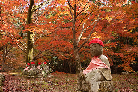 長門湯本温泉で紅葉をお愉しみいただきたく、大谷山荘では「大寧寺」までご送迎する「紅葉バス」を運行中です。大寧寺は1410年に建立された曹洞宗の名刹。境内には約120本のイロハモミジやイチョウが植わっており、紅葉スポットとしても見どころのある寺院でございます。ご宿泊の方は無料でご利用いただけますので、お気軽にご乗車くださいませ。