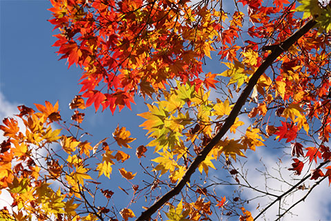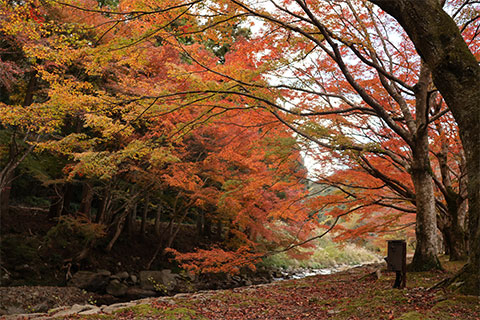 吹き抜ける風に木の葉が舞い、落ち葉を掃く音が静かな空に響く11月。長門湯本温泉では、昨年暖かい日が続いたため、紅葉の見頃は11月下旬と、例年より遅めとなりましたが、今年は昨年より暖かくはならず、9日頃から気温が下がったこともあり、昨年より少し早く紅葉が進みました。
