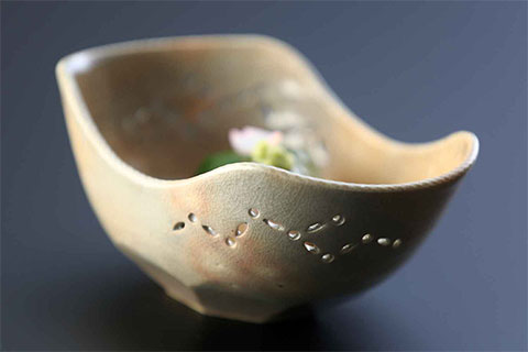 萩焼は吸水性に富み、焼成後に土と釉薬の収縮率の差によって生まれる貫入が、使い込むほどに味わいを生み出す「萩の七化け」を特徴としています。また、窯積みの位置などで色合いに変化が生まれ、想像もつかない仕上がりとなることも。磨かれた技で表現される作家の趣向と偶然の出会いが、一つとして同じものはない萩焼作品の魅力を作り出しています。「文化体験プラン」では、地元深川窯で活躍する若手作家たちを中心とした器を取り扱っております。伝統を守りながらも、それぞれの探求する新しい萩焼が表現された作品の数々をお愉しみくださいませ。