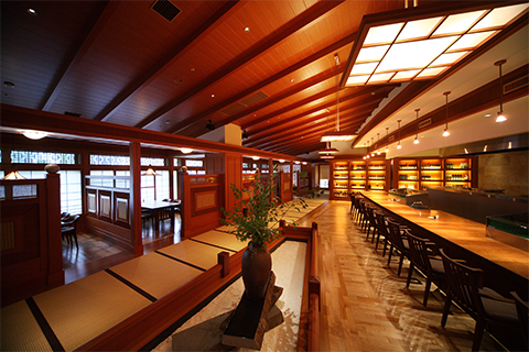 - 特色:地元萩焼作家を中心とした萩焼作品にて、長門の旬を楽しむ会席料理をご賞味いただきます。