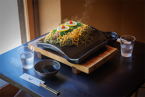 趣きある古民家複合施設「だいご長屋」の1階で営まれる瓦そば柳屋では、山口県で愛される瓦そばをご賞味いただけます。石州瓦の上でパリパリに焼かれる麺の上には錦糸卵に牛肉、新鮮なねぎ。瓦そばだけでは物足りないという方には、山口県の定番「萩・井上のしそわかめ」をまぶしたわかめむすびセットや、北浦の釜揚げしらすを地元の味わいで愉しむしらすめしセットもございます。また、テイクアウトメニューには、みたらし団子やアイスキャンディーがあり、食後の甘味は温泉街を歩きながらお愉しみいただけます。