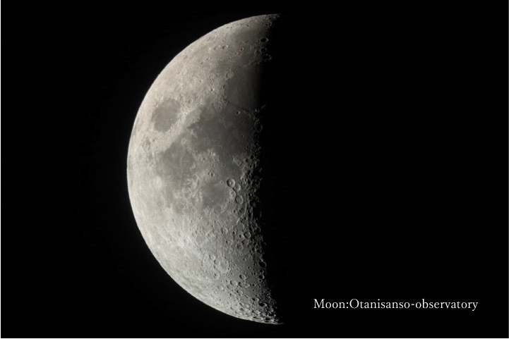 音信川沿いに桜の花びらが舞い、夜桜に心奪われる春の夜。空にもすっかりと新しい季節の天体が現れております。春の夜空は明るい星が少なく、朧になりがちなこともあり、天体を見つけ出すのが難しい季節ではございますが、まずは北斗七星を見つけると、星の位置関係を把握しやすくなります。北斗七星は、おおぐま座の尾の部分で星座ではございませんが、そのひしゃく型の形が特徴的なため、比較的探しやすいです。年中ご覧いただけますが、なかでも天高くのぼる春から夏にかけてが見頃です。ひしゃくの柄の先からゆるやかに視線を移すと、うしかい座の1等星アルクトゥールスが見え、その先には乙女座のスピカが青白く輝いています。この連なりは「春の大曲線」と呼ばれます。また、アルクトゥールス、スピカを結んだ辺から三角形になる位置の頂点に、しし座の2等星デネボラがあり、これらは春の大三角と呼ばれ、この季節を代表する天体として知られています。また、今月の月は、8日にレグルスと大接近、12~13日にはスピカと接近しますので、ご参考にご覧くださいませ。他にも、かに座の散開星団・プレセペ星団や、木星も見頃を迎えております。ぜひ望遠鏡からその姿をご覧くださいませ。