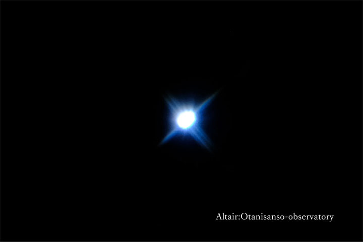 7日からは暦の上では秋の始まりとなりますが、夜空ではまだしっかりと夏の星々をご覧いただけます。数多の星が輝く天の川は肉眼で見ても美しく、さらにその中でひときわ強い光を放つ、こと座のベガ、わし座のアルタイル、はくちょう座のデネブが結ぶ夏の大三角は、この季節を象徴する華やかさがございます。わし座のアルタイルは、ベガ、デネブと少し離れた位置にありますが、はくちょう座の形と似た十字架型に並ぶ星々の中央にございます。自転が早い星としても知られており、8.9時間で1周するため、やや楕円形をしていると言われています。ベガ、アルタイル、デネブはいずれも夏の一等星。望遠鏡から覗いて見ると、肉眼では得られなかった星の輝きの強さを感じることができます。七夕伝説にも登場する夏の大三角を見つけに、ぜひ天体ドームまでお越しくださいませ。