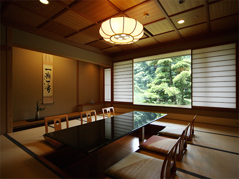 源泉かけ流しの湯を、客室露天風呂にて心ゆくまでお愉しみいただけるスイートでは、ご夕食会場「料亭」確約のプランをお選びいただけます。ご夕食は「三土料理の哲学」を基本に、長門の旬の素材を用いた特別会席にてご用意しております。個室にてゆっくりと、旬の味覚をお愉しみくださいませ。