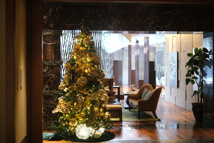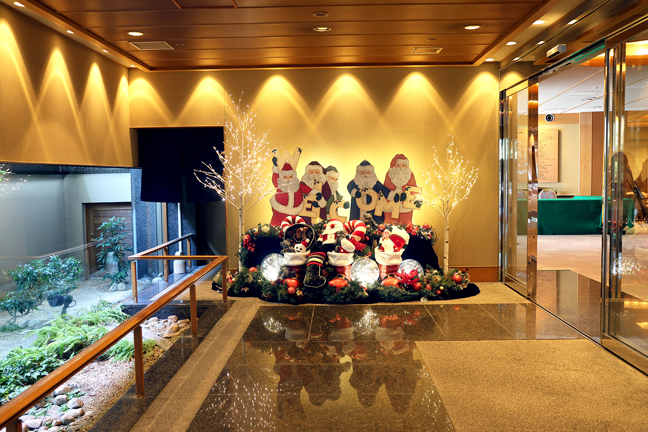 大谷山荘と別邸音信でサンタクロースやツリーがお出迎え。館内はクリスマスの彩りに包まれています。