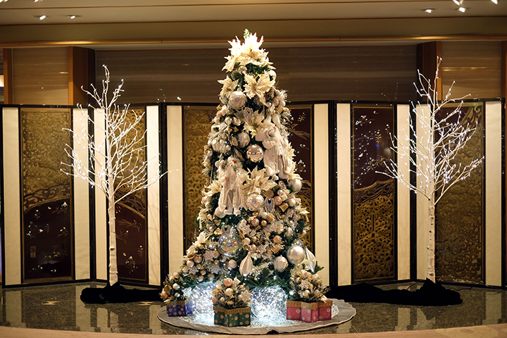 大谷山荘ロビーのクリスマスコーディネート「ホワイトクリスマス」