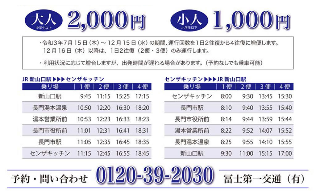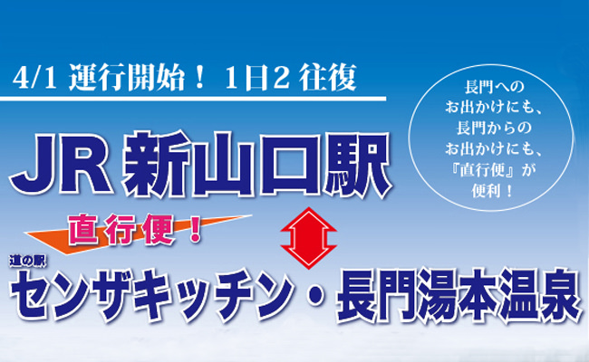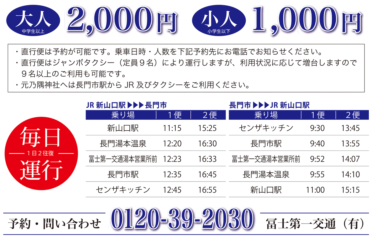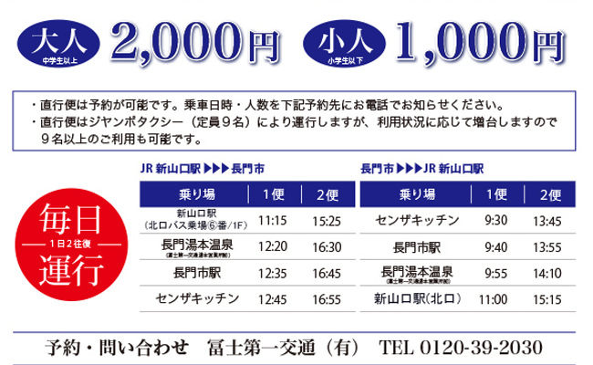 「長門市・新山口駅直行便の予約」とお伝えくださいませ。