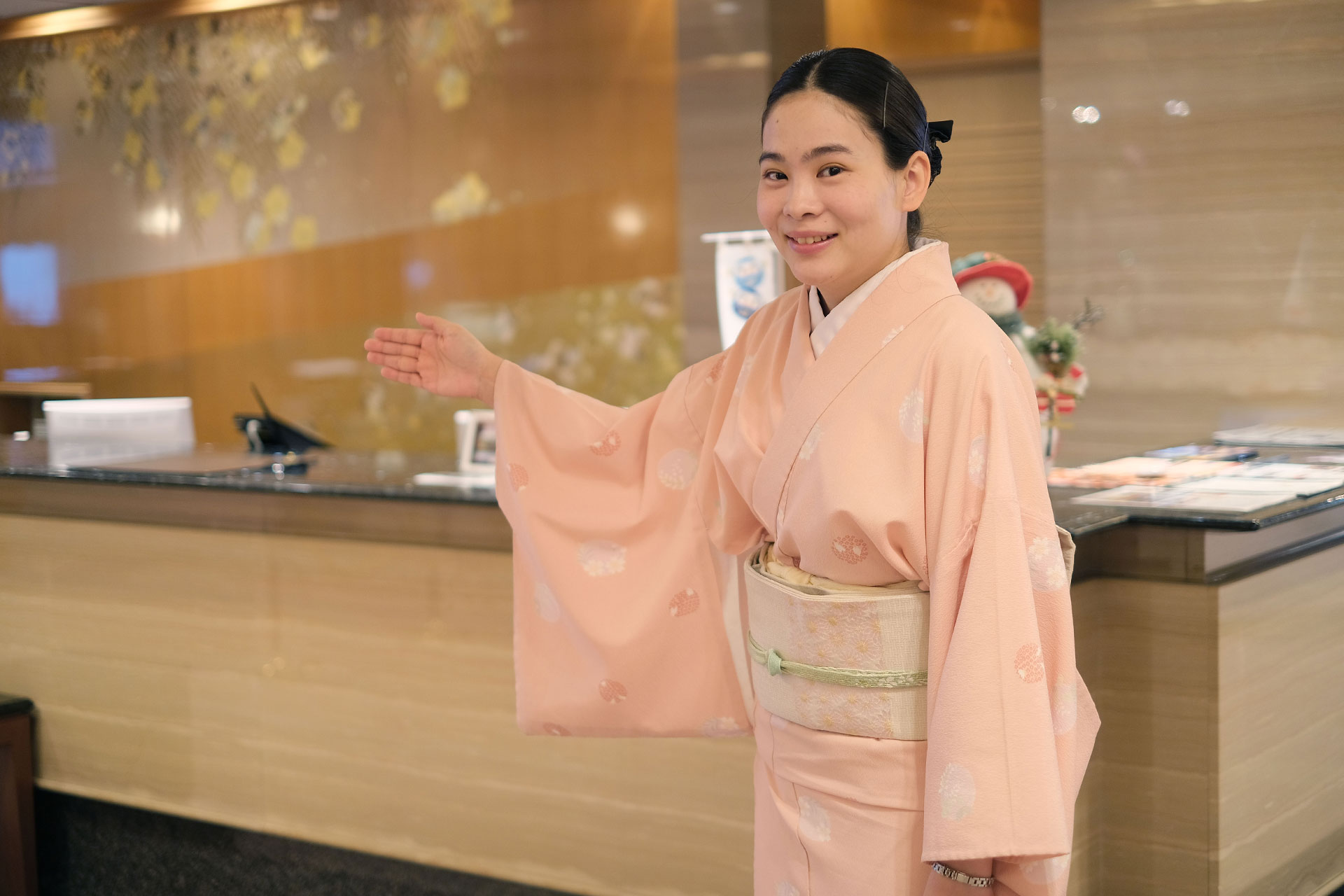 別邸音信のフロントをメインに勤務していますが、大谷山荘のフロントにも時々勤務しています。宿泊されるお客様のチェックイン、チェックアウトはもちろんですが、ご滞在中のお客様の対応、喫茶や売店利用などで立寄られるお客様の対応を行っています。フロントは、お客様と接する時間は短いですが、接客対応の喜びのお声や、「すべてが最高だったので、また来ます。」というお褒めの言葉をいただく機会が多くあります。そちらお客様を自身が対応をしていなくても、そういったお声を聞くことが出来るととても嬉しく、やりがいにも繋がっています。